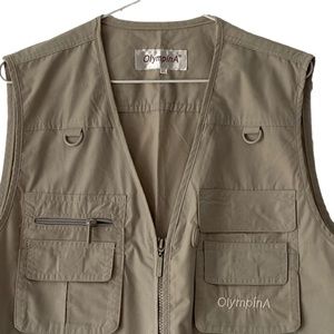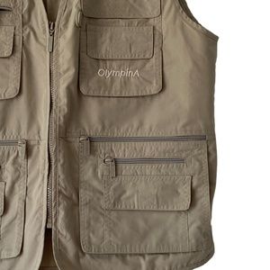 OlympinA brand tan fishing outdoor vest multiple pockets size XXL fits small