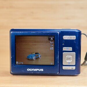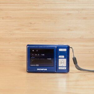The Olympus T-100 is a compact 12MP digital camera with a 3x optical zoom lens, designed for simple everyday photography. Its lightweight and user-friendly design makes it perfect for beginners, travelers, or anyone who wants a reliable point-and-shoot camera in a stylish blue finish.