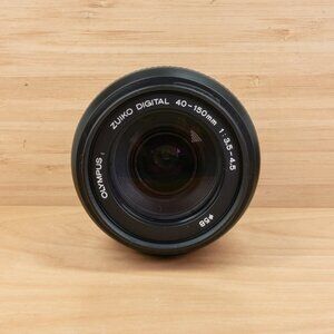 Olympus Zuiko Digital 40-150mm f/3.5-4.5 zoom lens for Four Thirds system cameras. Compact and lightweight telephoto lens ideal for portraits, sports, and wildlife.