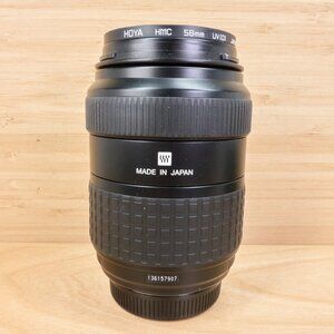 Condition: Tested and working. Optics are clean — no haze, fungus, or scratches. Minor cosmetic wear on barrel. Includes Hoya HMC 58mm UV filter and front/rear caps.