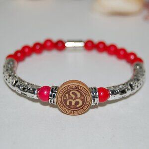 Om Bracelet,Yoga Bracelet,6mm Red Stone Beads,Magnetic Closure