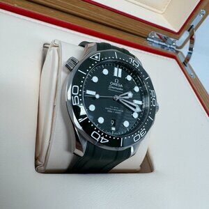 For sale is an Omega Seamaster Diver 300M, reference 210.32.42.20.10.001. Known as the “Seaweed” edition, this model features the highly desirable green ceramic wave dial paired with a matching rubber strap.