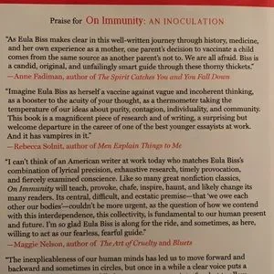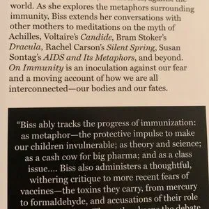 It is primarily about vaccination of children. Bill Gates endorsed it on Twitter, saying "On Immunity is a great book that is not out to demonize anyone who holds opposing views ** New to Poshmark? Use referral code mybooknook on sign-up to receive a $15 credit towards your first purchase***