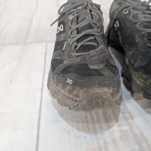 Hit the trails with confidence in these On Running Cloudventure sneakers. These women's size 8 shoes are crafted from a durable and waterproof black synthetic material, designed to keep your feet dry and comfortable in any weather. Featuring On Running's signature CloudTec cushioning, they provide a soft landing and powerful takeoff for a smooth, responsive run. Perfect for trail running or outdoor adventures, these athletic sneakers combine performance with a sleek, minimalist design.