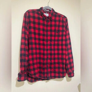 Black and red men’s flannel shirt. Made very well 100% cotton material as shown by fabric tag. Men’s size large. No issues in good condition. Measurements available upon request