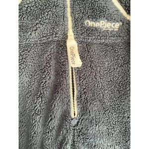 OncePiece Flannel Fleece Onesie Jumpsuit Hooded Pockets Blue