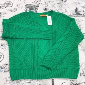 Mixed knits construct this long sleeve sweater that is finished with a classic crew neckline.