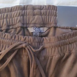 One By Chapter One Women's Olive Green Suede Jogger Capris Plus Size 1X
