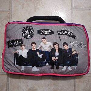 Super cute, plush boombox style decorative pillow with its own handle! Featuring Louis, Liam, Zayn, Niall & Harry on one side & a boombox design on the other with their names printed across! Released in 2014. Measures approximately 17" long, 10.5" wide & 3" thick.