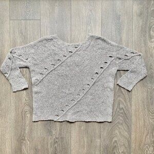 Anthropologie, one grey day, merino wool, wool, boho, loose fit, sweater, knit, cozy.