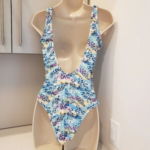 One Piece NWOT Animal Print Low Cut Back One Piece Colorful Size Small