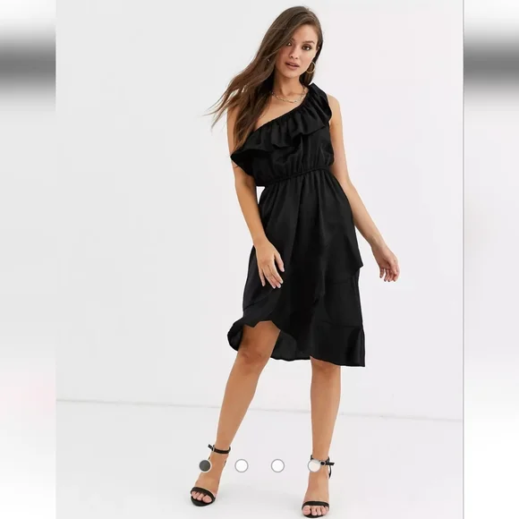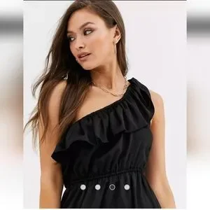 A flowy black one shoulder dress in size 10, perfect for a night out! purchased from ASOS.