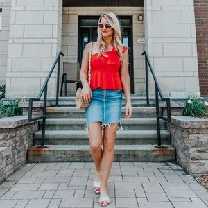 One shoulder ruffle top, worn once for photoshoot Side zipper & slight stretch to the material