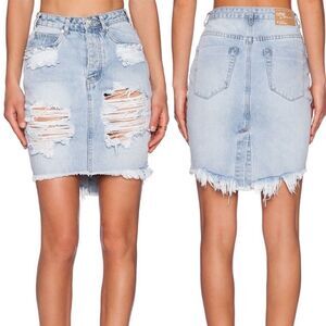 One TEASPOON High Rise Mini Jean Skirt Destroyed Blue 25