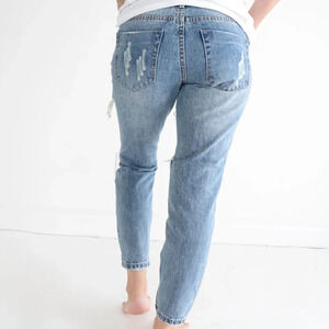 One Tea Spoon Blue "Trashed Free Birds" Extreme Distressed Straight Tapered 27