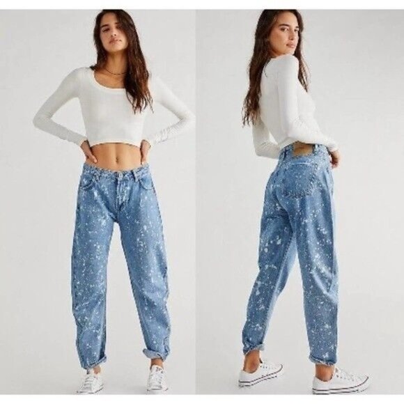 Effortlessly cool in a slouchy silhouette, this style from OneTeaspoon is featured in a mid-rise, tapered-leg design with statement splatter-inspired wash detailing throughout for added dimension.