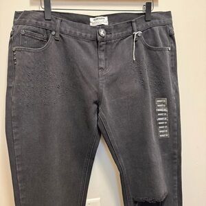 One Teaspoon Awesome Baggies Low Waist Relaxed Tapered Rolled Cuff Black Jeans