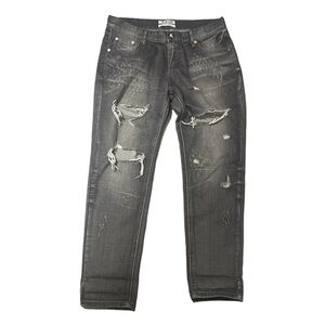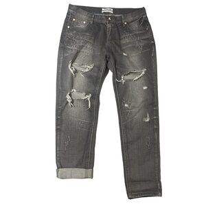 Cool-girl essential! These One Teaspoon Awesome Baggies jeans in size 28 feature a relaxed boyfriend fit with a flattering mid-rise waist. Crafted from high-quality denim with signature heavy distressing, faded black wash, and raw-edge detailing. Finished with ankle-length turn-up cuffs for a laid-back vibe.
