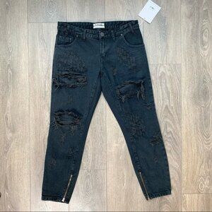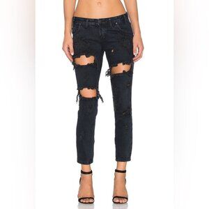 New Revolve One Teaspoon Fox Black Freebirds Destroyed Denim Skinny Jeans.