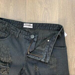 One Teaspoon Fox Black Freebirds Jeans Distressed Skinny Straight Ankle Zipper