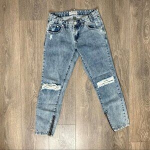 One Teaspoon Freebirds Skinny Jeans Distressed Denim ankle Zip Lowrise acid wash