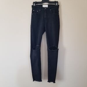 One Teaspoon Jeans High Waist Freebirds II Size 24 Black Distressed Denim