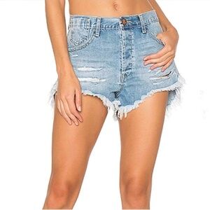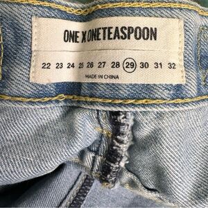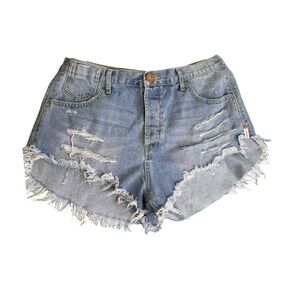 One Teaspoon Le Wolves Denim Shorts Blue Bone Frayed Hem Distressed Size 29