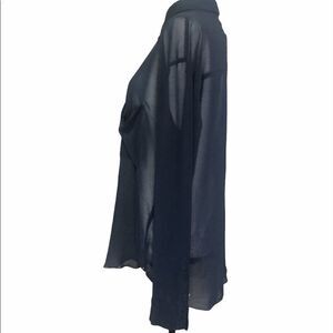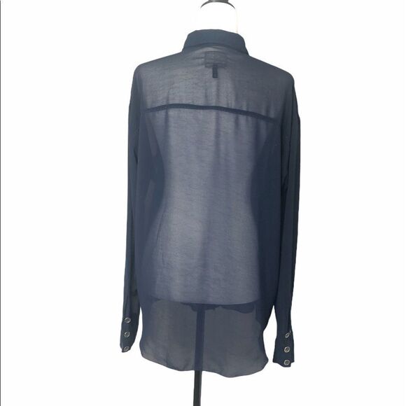 One Teaspoon Sheer Navy Button Down Long Sleeve