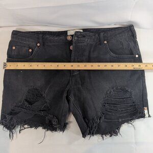 One Teaspoon Stevies 30 Denim Shorts Jeans Black Distressed Slim-Fit Boyfriend