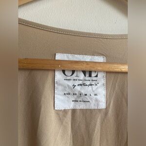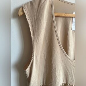 Elevate your wardrobe with this stylish tan sleeveless top. Perfect for any occasion, this top offers both comfort and elegance.