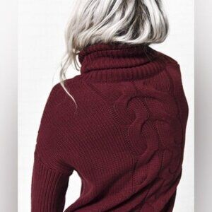 New One Teaspoon Bordeaux Love Society Roll Turtleneck Cable Knit Sweater.