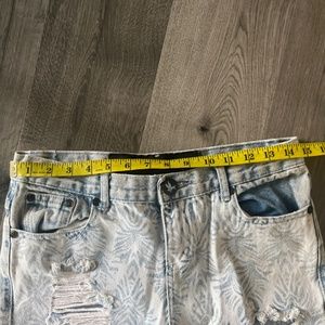 EUC rare OneTeaspoon light washed distressed denim jeans , cool faded pattern on front. Mid to low rise straight leg. Love these jeans so much but they just don’t fit anymore. Measurements in photo