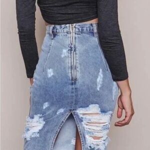 One X One Teaspoon 'Freelove' Distressed Denim Skirt size 28