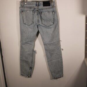 One by One Teaspoon Freebirds Low Waist Skinny Zipper Leg Size 25 Busted Knees