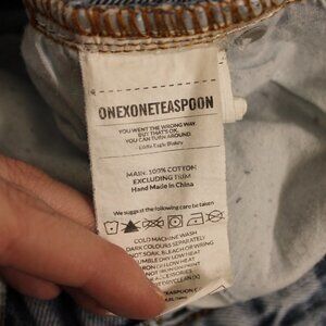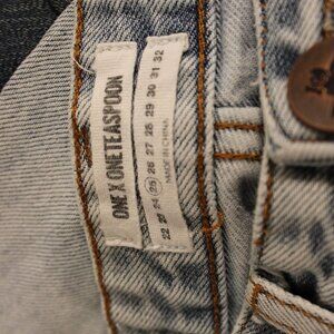 Elevate your denim game with these One by One Teaspoon Freebirds light wash skinny jeans. In a size 25 with a low waist, these jeans feature edgy zipper accents at the ankle hem and busted knees for a distressed look. The skinny fit hugs your curves in all the right places, flattering your figure while providing all-day comfort. Perfect for any casual occasion, these jeans are a wardrobe staple that you won't want to take off.