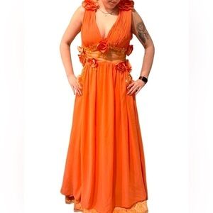 Look unique and feel beautiful in this handmade Peach Floral Sequin Prom Grad Dress. It was handmade with intricate flowers, and see-through cut outs. It’s hard to explain how gorgeous this dress is in person!