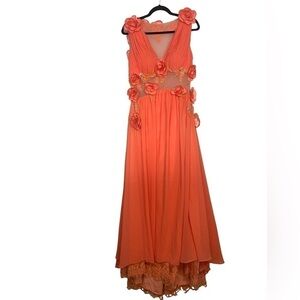 One of a Kind Peach Prom Grad Dress Floral Sequin Detail