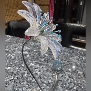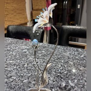 This enchanting flower refracts light in shimmering blues and silvers, transforming any shelf, desk, or display case into a little slice of paradise. It’s a true conversation piece — elegant, timeless, and utterly breathtaking.