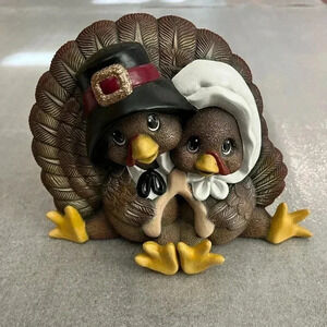 One of a kind Handmade ceramic Happy Thanksgiving Turkey Couple