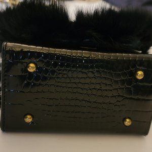 One of a kind Real Fur and Leather Top Handle bag with Paulith vintage Hardware