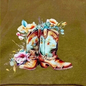 Making custom shirts has become a passion of mine 💚 this is a one of a kind brown zip up hoodie cowgirl print with a small emblem on the front pocket and a larger back print size large so cute !!