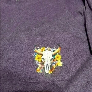 Making custom shirts has become a passion of mine 💚 this is a one of a kind purple pocket tee long sleeve cowgirl print with a small emblem on the front pocket size medium so cute !! New with out tags