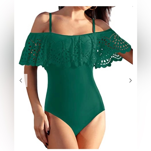 One piece green ruffled bathing suit