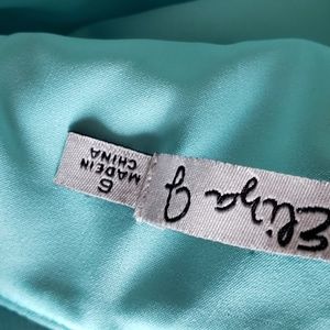 The runway, beaded, beautiful ligth greenish blue, one shoulder satin coctail dress. Never been worn.