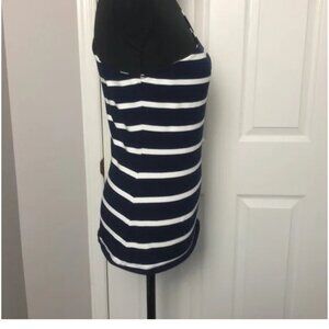 Great quality one shoulder striped dark blue and white top