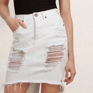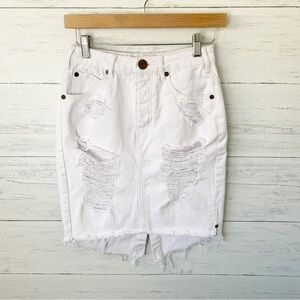 One x One Teaspoon 2020 High Waist Super Fitted White Distressed Denim Skirt Size 26/Small