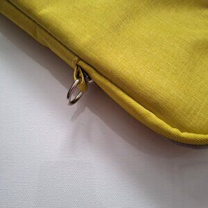There is a large slip pocket on the front and another on the back (for your phone, notepad, papers)