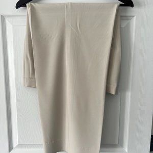 This handmade women's pant suit is a one-of-a-kind piece that is sure to make a statement. Tailored with a fine Viscose material in a beautiful cream colour, this suit is perfect for the fashion-forward woman who wants to stand out from the crowd. Made in Canada, this suit is designed for the modern woman who appreciates traditional craftsmanship. The suit features a top with a matching pant, making it a versatile addition to any wardrobe. Don't miss your chance to own this unique and stylish piece!