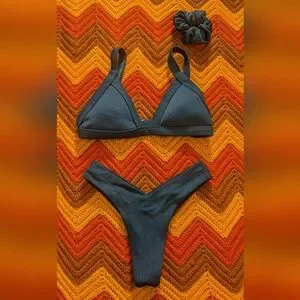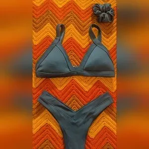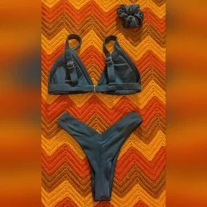 Two piece emerald green bikini set with matching scrunchie from OneOne.
