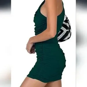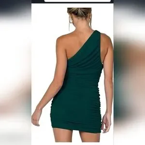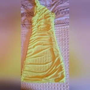 Vibrant one-shoulder yellow dress with ruched detailing. new never worn